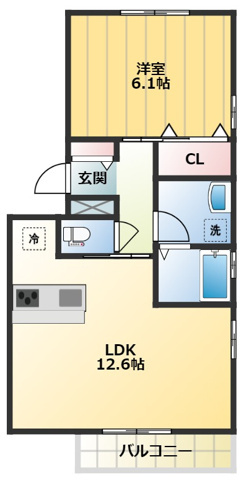 12.6帖の広いLDKに、カウンターキッチン!
