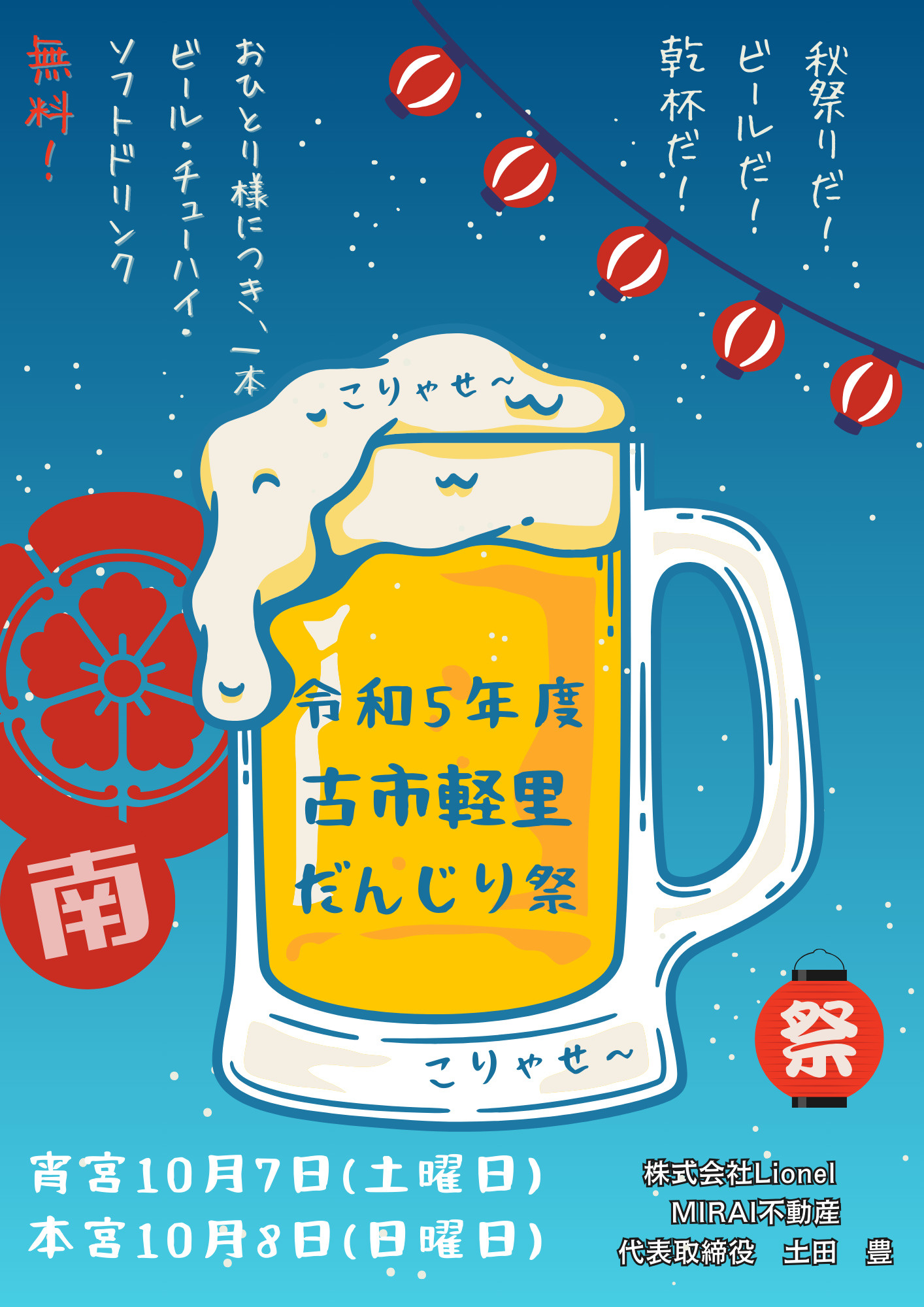本日から2日間、10/7.8は古市軽里だんじり祭です!