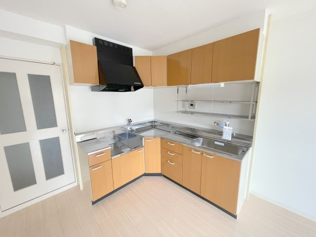 キッチンはコーナーキッチンで賃貸では少し珍しいですね"(-""-)"