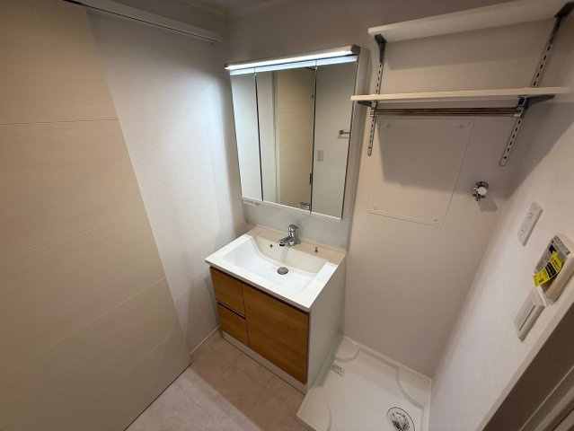 洗面所には収納棚も付いているので便利です✊